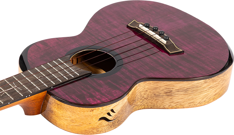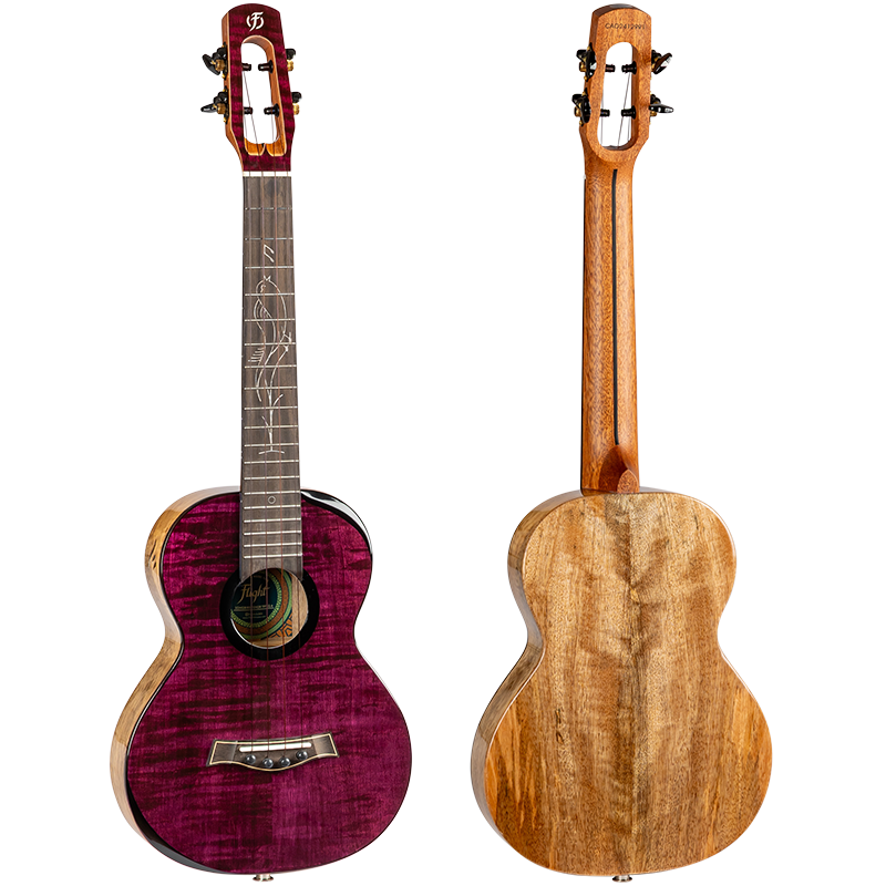 Flight Songbird — это укулеле лубокого фиолетового цвета с верхней декой из цельного волнистого клена и нижней декой и обечайками из цельного манго. Благодаря изящному тонкому корпусу инструмент удобно лежит в руках и идеально подходит для путешествий, ничуть не уступая в звучании полноразмерным моделям. Древесина манго дарит теплый, насыщенный и глубокий звук с превосходным сустейном, его часто сравнивают с гавайской коа. В сочетании с верхней декой из клена эта модель выдаёт яркое и сладкое звучание, в которое невозможно не влюбиться!